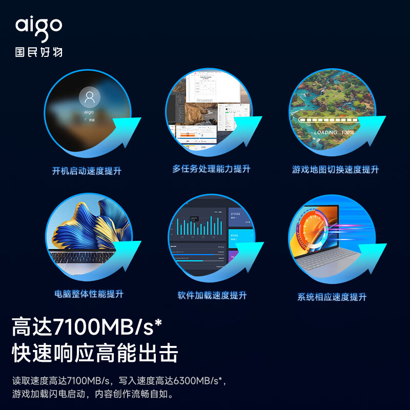 3、这款爱国者(aigo)2TBSSD固态硬盘真的非常好用!安装非常简单,M.2接口也很方便。速度非常快,读取速度高达7480MB/s,使用起来特别顺畅,加载大型游戏和软件都没问题。性价比也很高,只要819元,还送安装工具和散热贴。总之,非常推荐给需要大容量高速存储的朋友!