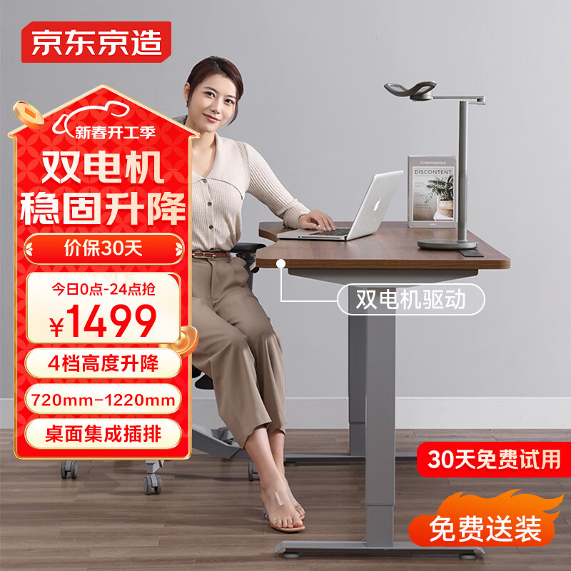 京东京造电动升降电脑桌 书桌 桌子学习桌 双电机1.4m胡桃木色价格:1699.00元!