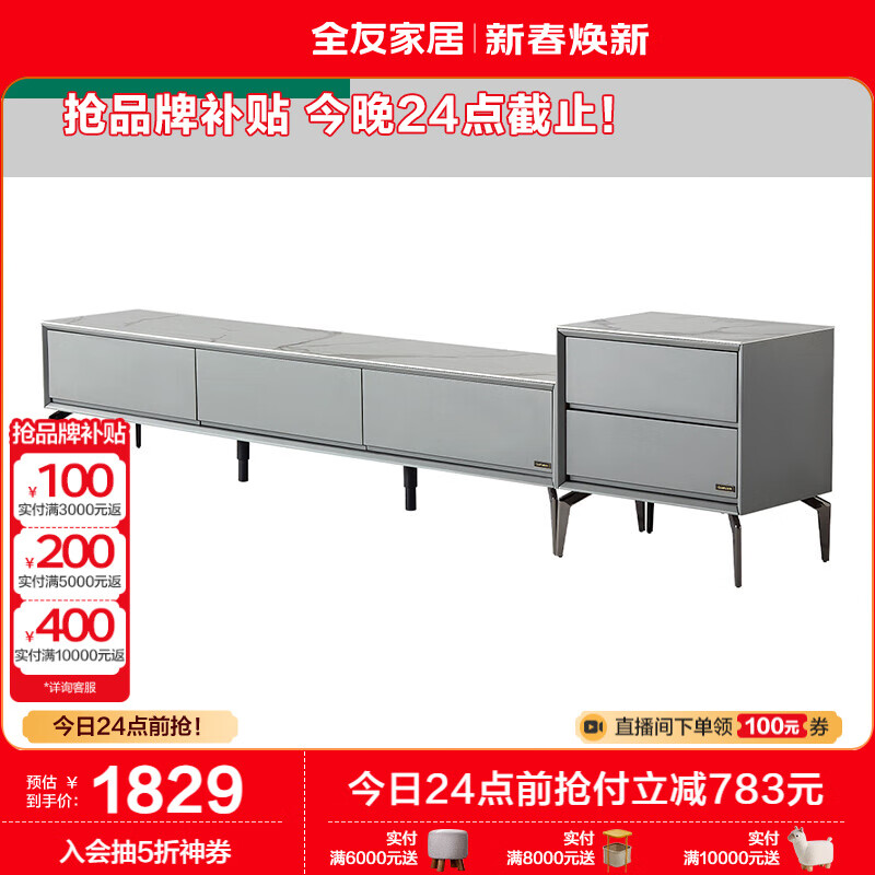 全友家居 电视柜现代简约岩板电视柜落地客厅家具储物收纳柜子DW1055价格:2612.86元!