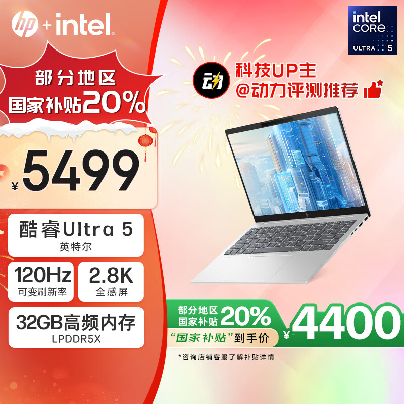 惠普HP【补贴20%】星Book Pro 14 2024 轻薄笔记本电脑(酷睿Ultra5 32G 1T 2.8K 120Hz OLED AI)银价格:5499.00元!