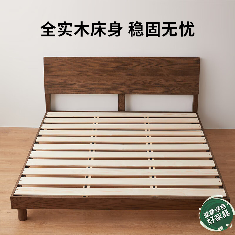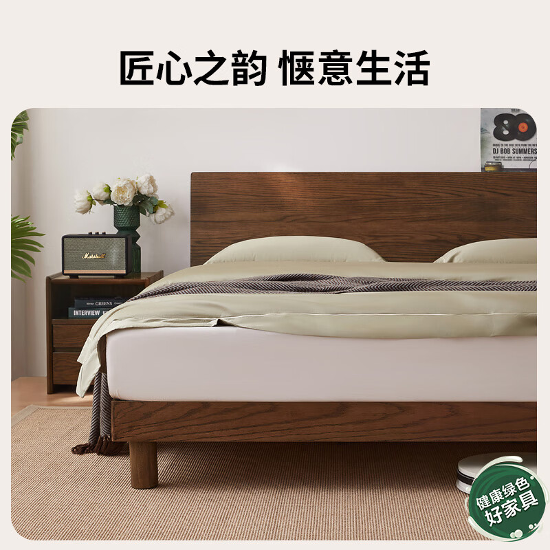 京东京造家居京兮实木床 FAS级橡木高床头 双人床胡桃色1.5×2米价格:1699.00元!