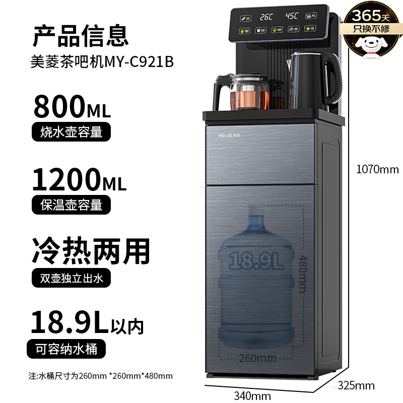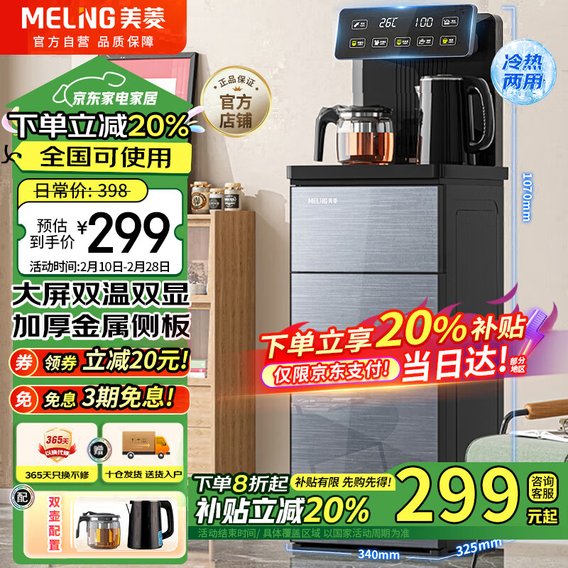 美菱(MeiLing)茶吧机家用饮水机大屏下置式水桶饮水机制冷制热大屏双显双出水多功能智能遥控冷热款MY-C921-B价格:429.00元!