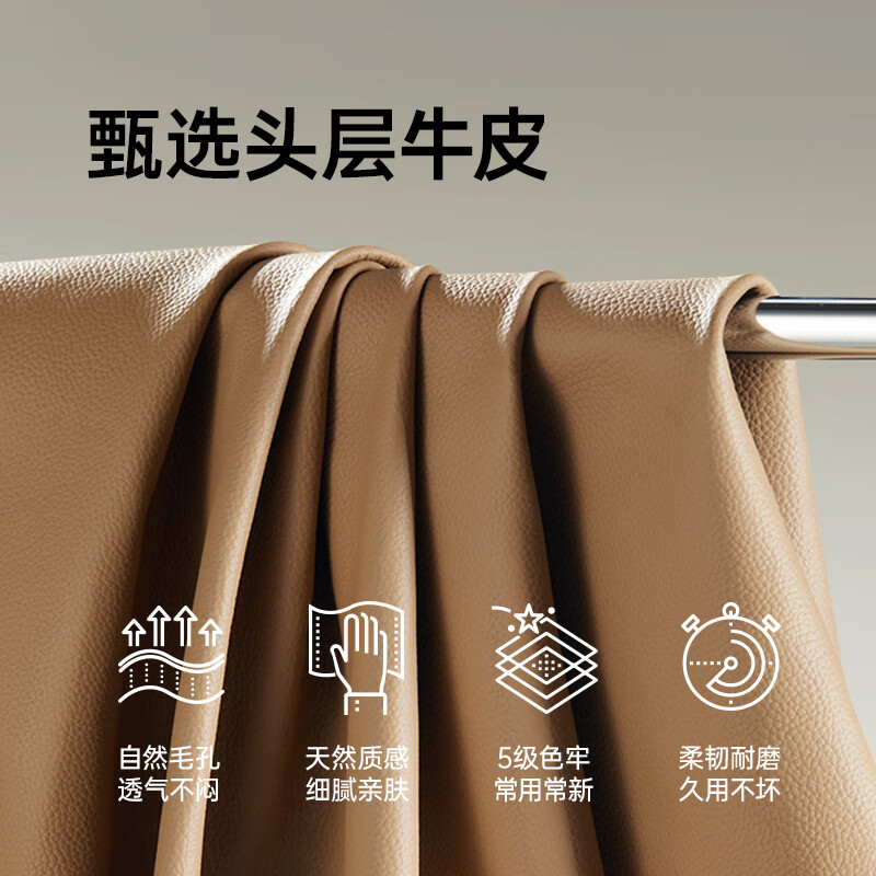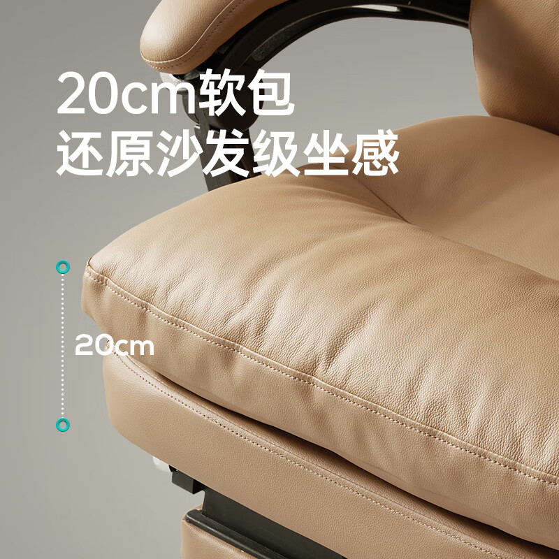 4、外观设计很好看流畅质感不错皮面摸起来手感好组装方便椅子有重量坐在上面很稳身体包裹着脚托设计很到位伸缩杆再粗点对我就更好了靠枕位置能上能下很到位我和爱人都合适双层包装很靠谱老板椅很是喜欢