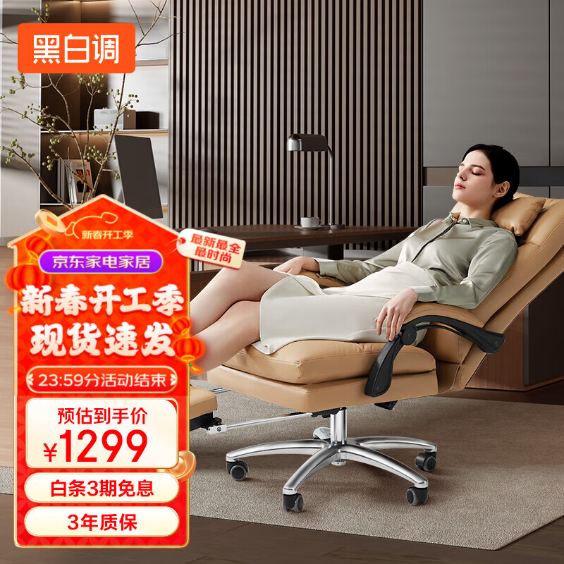 黑白调R3 Pro人体工学椅皮椅老板总裁椅家用办公椅电脑椅子久坐舒适可躺价格:1398.00元!
