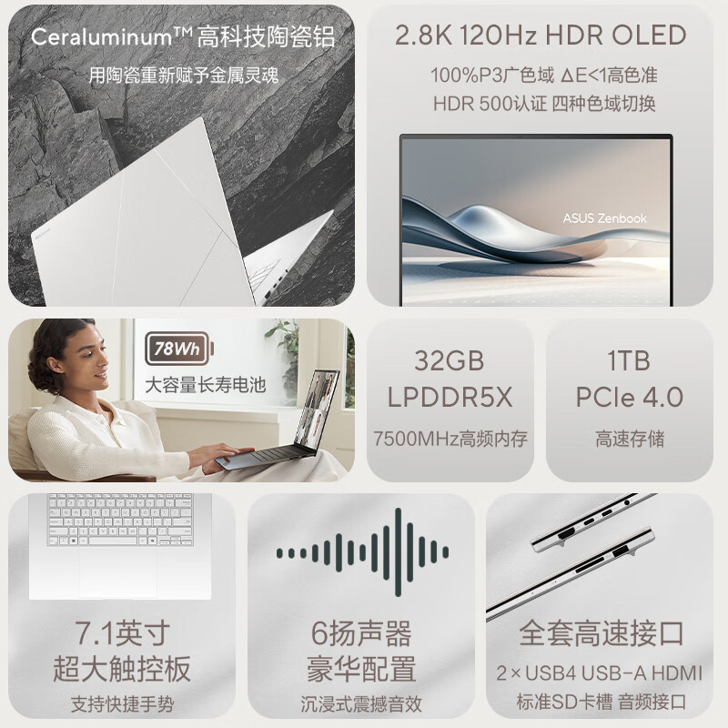 想知道华硕灵耀16 Air的朋友有点多,这回就给大家介绍下,这款才出不久,特别的受欢迎,超轻超薄超大超快,文生图响应非常快,编辑视频和图片大大提升效率,确实值得拥有。