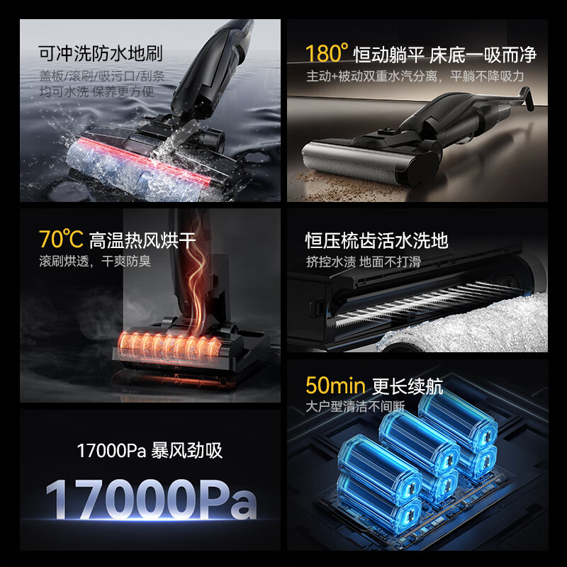 特色功能:吸水,基站款,沿边清洁,毛发防缠绕,180°平躺