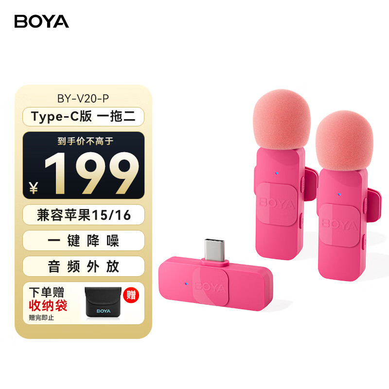 BOYA 博雅BY-V20小粉麦手机直播带货迷你无线领夹麦克风胸麦小蜜蜂网红户外Vlog短视频收音无线话筒价格:234.12元!