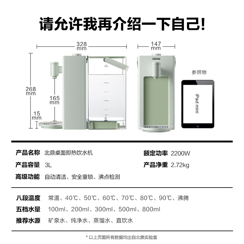 5、颜值高,出水大,噪音小,质感好,物流快,操作简单方便,带童锁,妥妥的喝水神器,再也不担心娃喝不到温水了,你永远可以相信北鼎的品质。