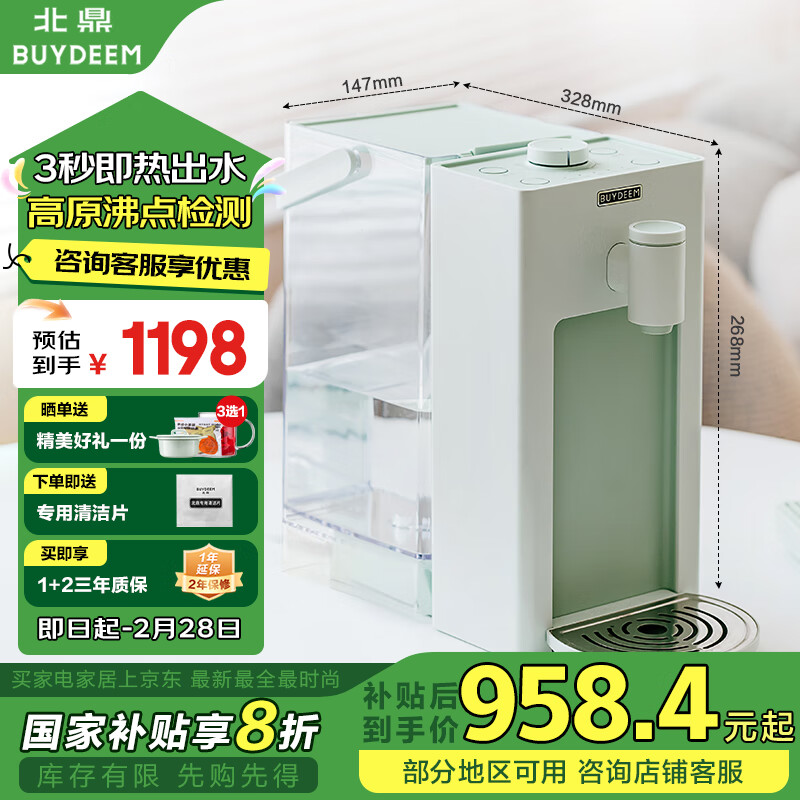 北鼎(Buydeem)台式饮水机办公室桌面即热式饮水机速热饮水机智能饮水机一体机3LS901浅衫绿 价格:1198.00元!