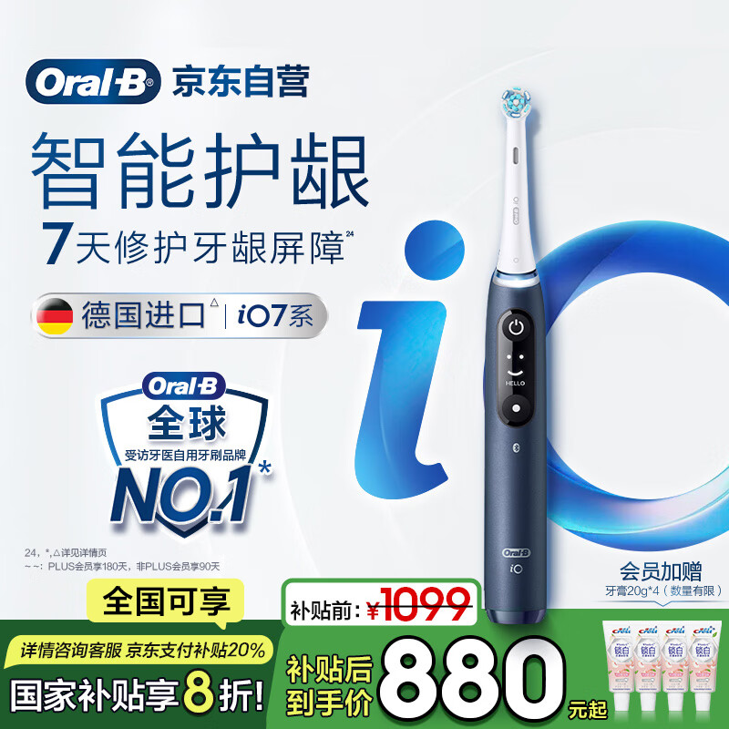 欧乐B成人电动牙刷iO7系智能可视深度清洁牙龈呵护情侣生日礼物男家电补贴自营官方旗舰店热卖榜价格:969.00元!