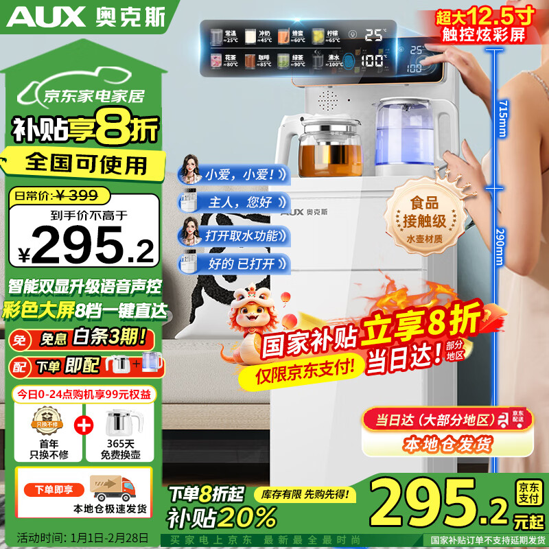 奥克斯(AUX)家用大款茶吧机 智能语音声控远程遥控可触控大屏饮水机 彩屏双温双显长效保温加厚侧板YCB-41价格:499.00元!