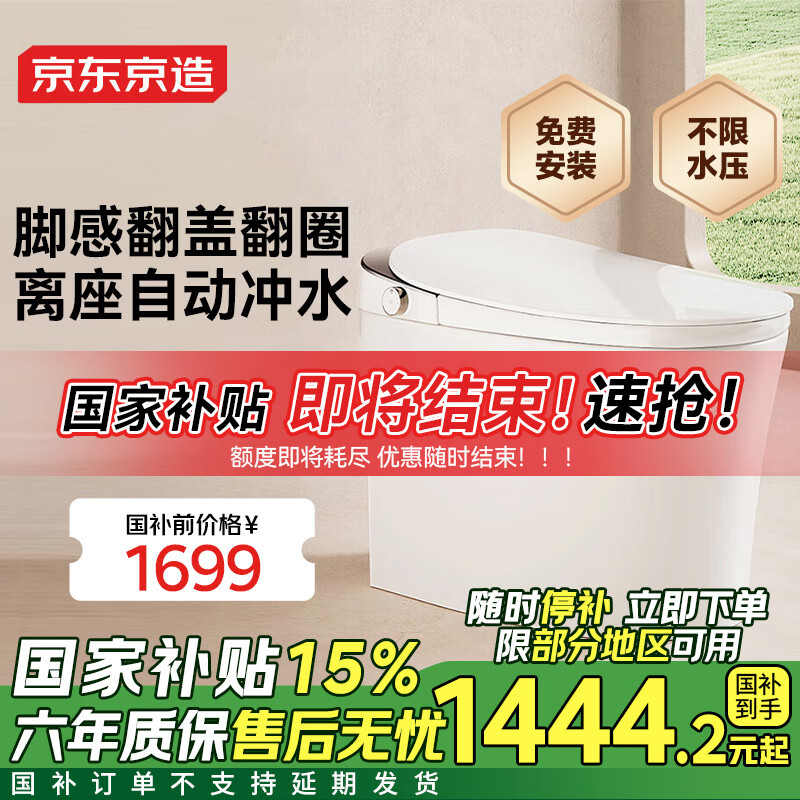 京东京造小白鲸pro轻智能马桶独立水箱 家用小户型全自动 脚触翻盖翻圈价格:1699.00元!
