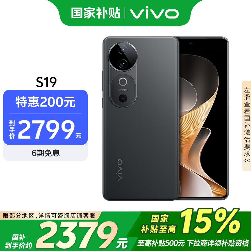 vivo S19 16GB+512GB 松烟墨 补贴 6000mAh超薄长续航 影棚级柔光环 第三代骁龙7 拍照 AI 手机价格:2999.00元!