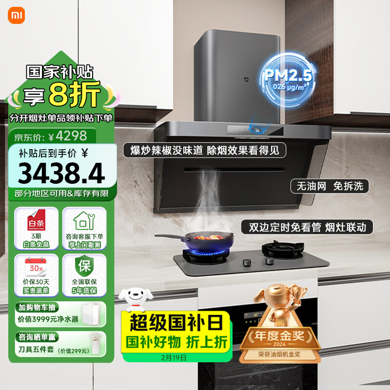 米家小米抽油烟机净烟机P1 家电补贴20%侧吸油烟机家用以旧换新液化气燃气灶MJ04CY【套装商品】价格:4298.00元!