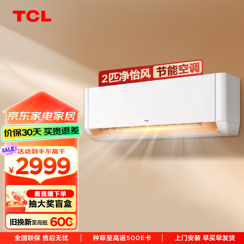 TCL空调 2匹 新三级能效 变频冷暖 净怡风 大风量 卧室壁挂式空调挂机 KFR-51GW/JQ2Ea+B3以旧换新价格:2999.00元!