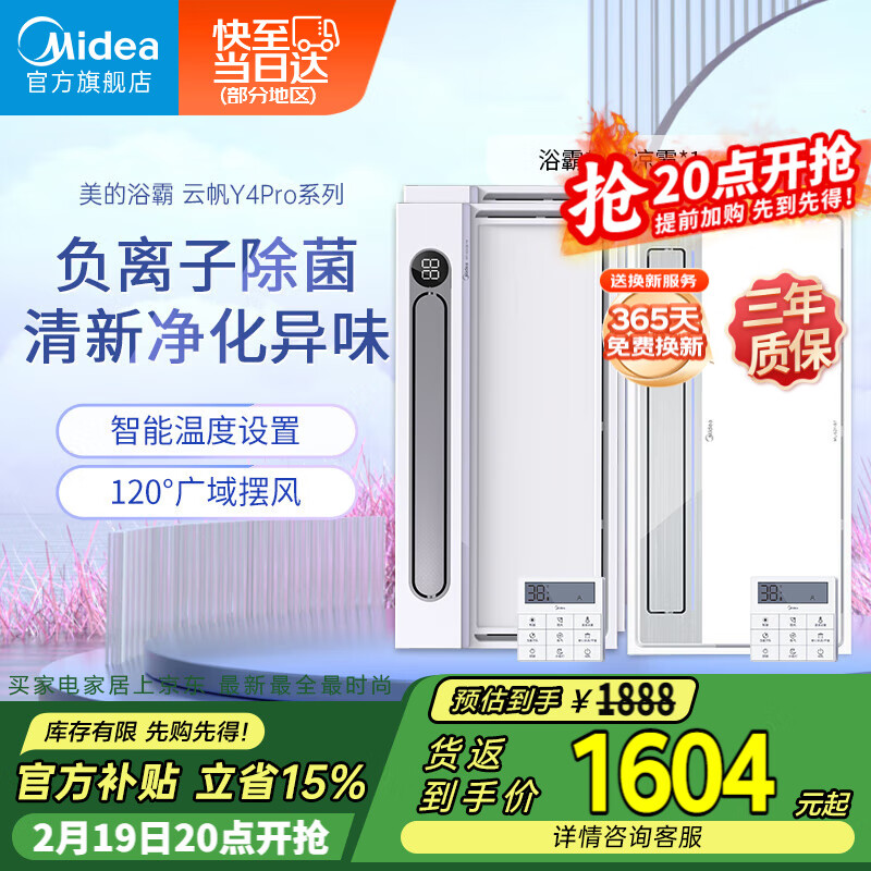 美的(Midea)风暖浴霸取暖换气吹风照明一体机遥控数显速热集成吊顶双电机浴室价格:1888.00元!