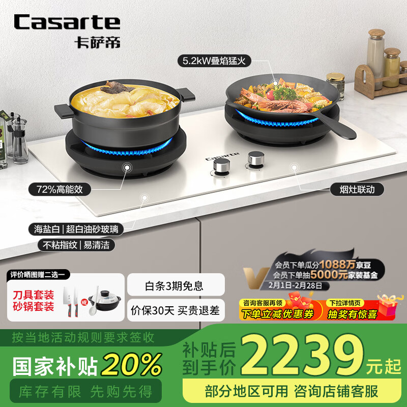 卡萨帝(Casarte)星悦小炫风 燃气灶天然气 白色百搭灶具 5.2kw大火力 72%高热效 叠焰猛火台嵌两用CDZ5U9(天然气)价格:2799.00元!