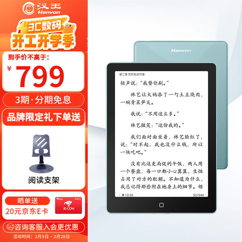 汉王(Hanvon)Clear6 Plus 6英寸电子书阅读器 墨水屏电纸书 智能阅读本电子纸办公本平板电脑 碧水青4+32G价格:789.00元!