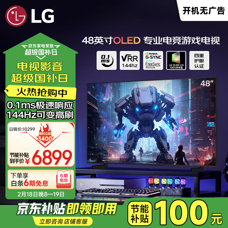 LG电视C4系列 48英寸OLED48C4PCA 4K超高清屏 专业智能电竞游戏电视 120HZ高刷新 以旧换新价格:6899.00元!