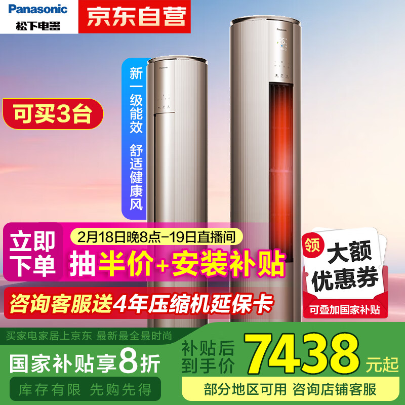 松下空调3匹新一级能效变频冷暖柜机 除菌客厅立式空调 EJ27FS10M 以旧换新家电补贴价格:9298.00元!
