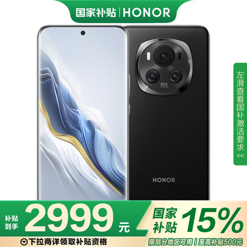 荣耀Magic6 单反级荣耀鹰眼相机 荣耀巨犀玻璃 第三代骁龙8 12+256 绒黑色 长续航 5G AI手机 政府补贴价格:3499.00元!