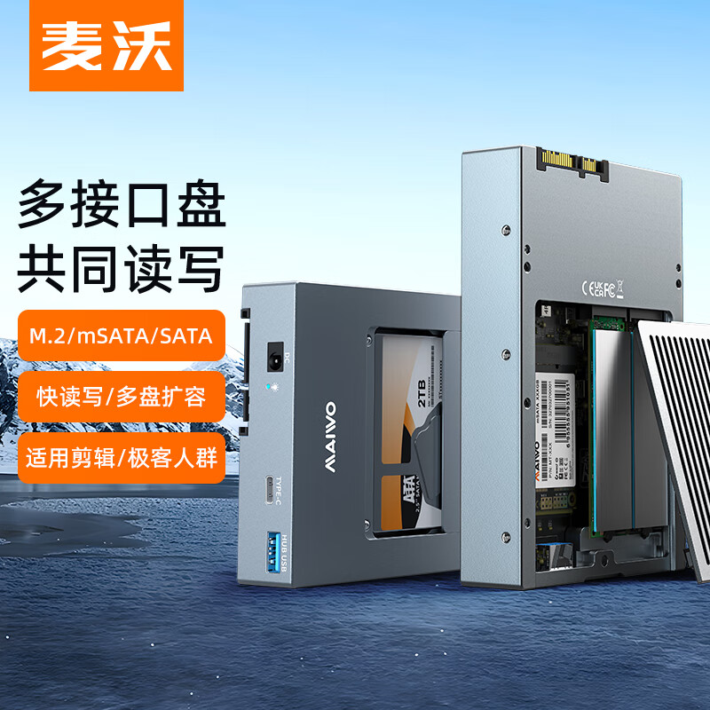 麦沃(MAIWO) K3529C M.2双协议 mSATA 2.5英寸SATA固态机械移动硬盘盒转3.5英寸模型全铝外壳USB扩展盒价格:2452.60元!