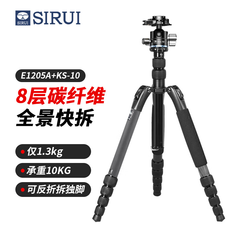 思锐(SIRUI)三脚架 E1205A+KS-10 碳纤维含云台佳能尼康单反相机三角架 反折单反相机三脚架 可拆独脚架价格:889.00元!