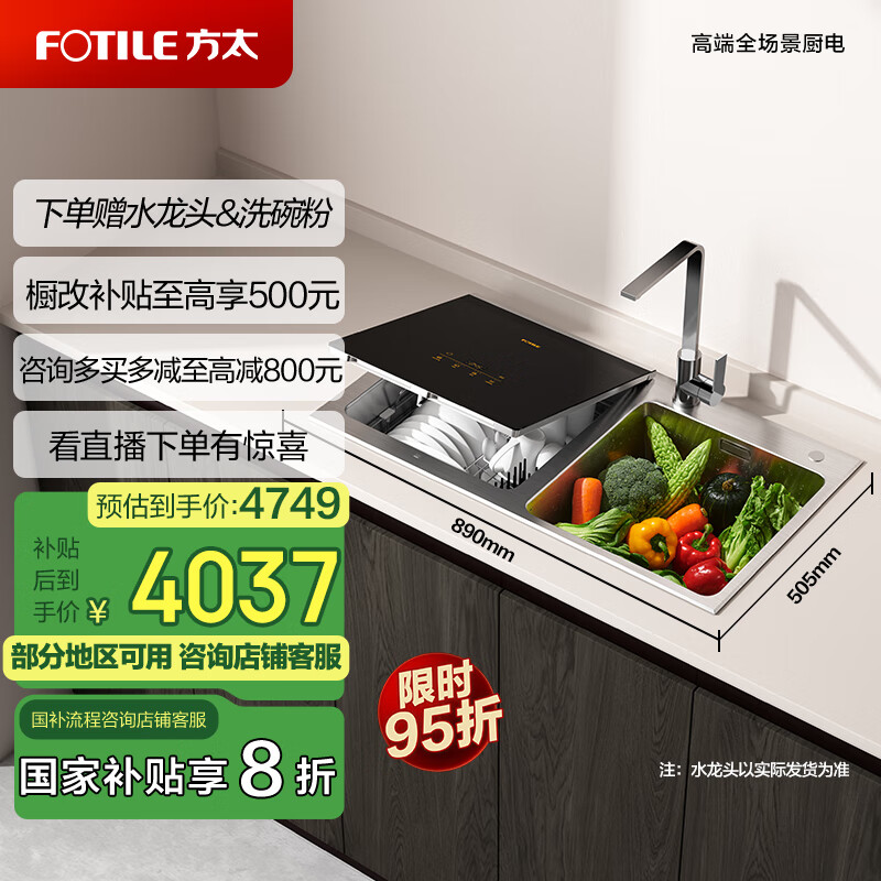 方太(FOTILE)洗碗机水槽式家用 跨界三合一 全自动洗烘一体 高能气泡洗 加强除菌 洗海鲜果蔬去农残 C3AL价格:4999.00元!