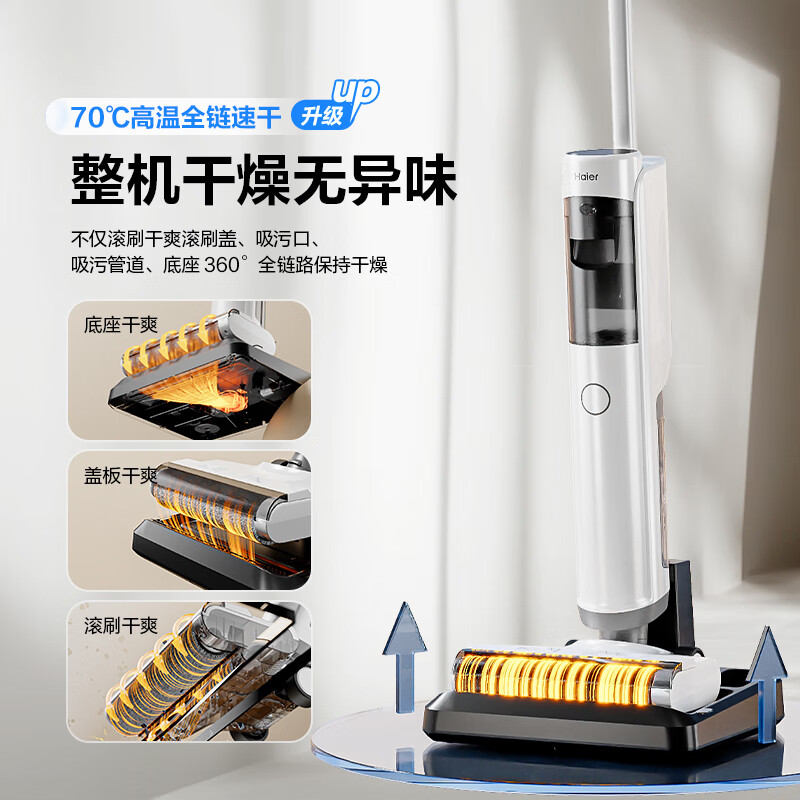 海尔A500Pro小海豚系列【6重防缠 70°C全链速干】洗地机吸拖一体自动清洗拖地机器人价格:1599.00元!