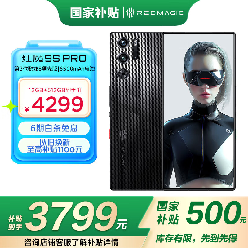 努比亚(nubia)红魔9S Pro AI游戏手机 12+512暗夜骑士 骁龙8Gen3版 6500mAh电竞手机 补贴价格:4299.00元!