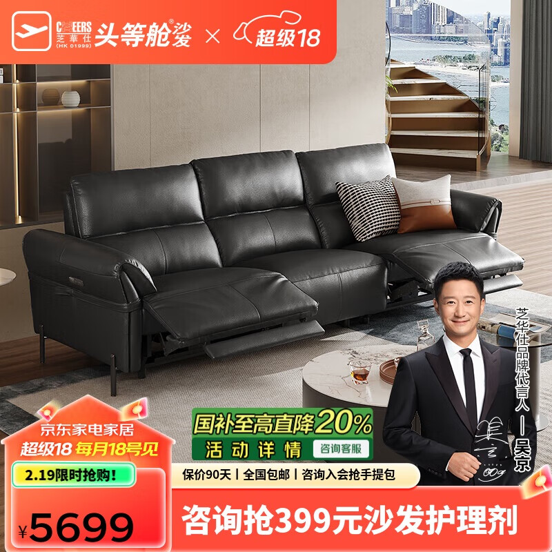 芝华仕(CHEERS)头等舱智能椅绅士皮沙发零靠墙意式功能客厅芝华士50795升级三黑价格:5699.00元!
