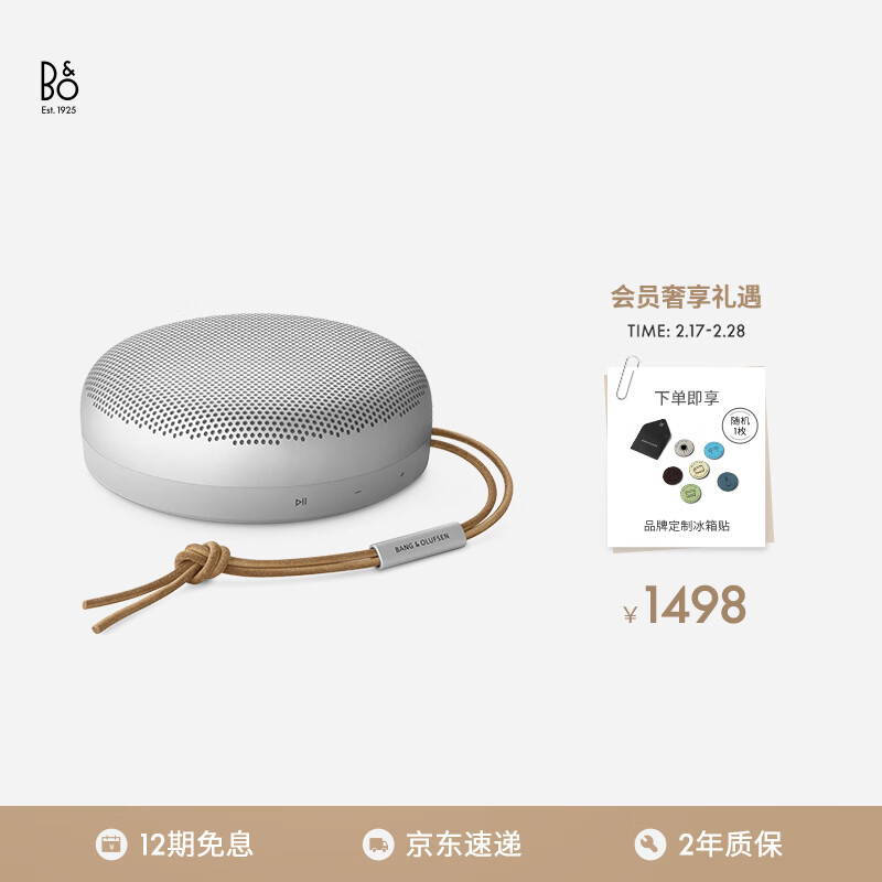 B&O Beosound A1 Gen2 便携式无线蓝牙音响 桌面室内低音炮音箱 节日礼物 雾灰色价格:1498.00元!