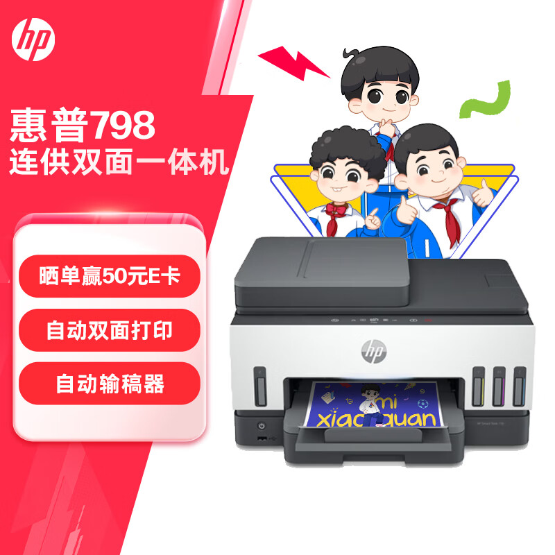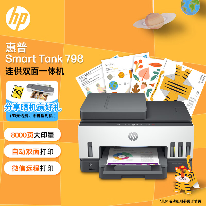 惠普(HP)798 双面无线连供打印机家用 四合一彩色打印复印扫描商用办公一体机 内置墨仓单页成本1分钱价格:2999.00元!