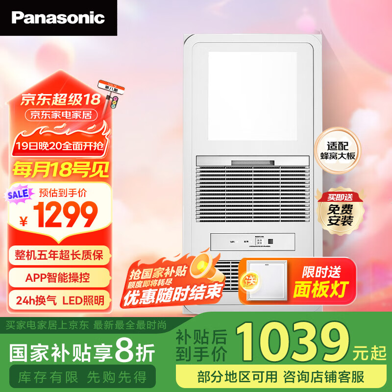 松下(Panasonic)风暖浴霸照明排气一体集成300x600智能灯浴室暖风机 FV-RB20VL1价格:2230.00元!