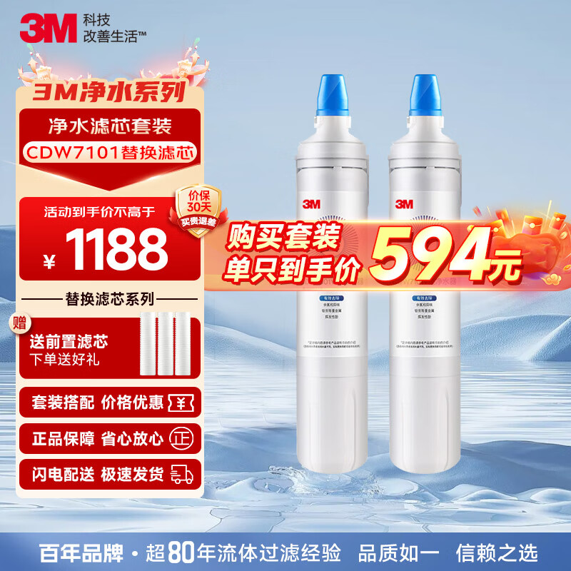 3M净水器家用净水机原装替换滤芯 CDW7101V-C滤芯两只装(本品*1+附件*1共计两只)价格:1188.00元!