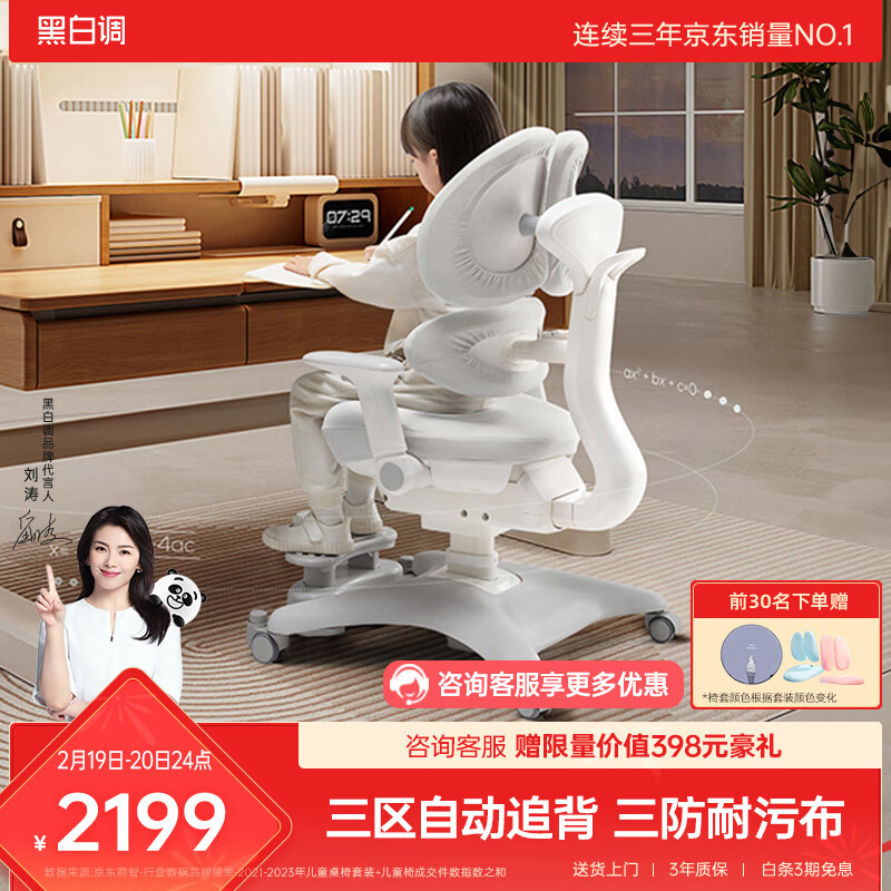 黑白调儿童G6Pro儿童学习椅学生座椅子矫姿写字椅升降久坐舒服餐桌椅价格:2199.00元!
