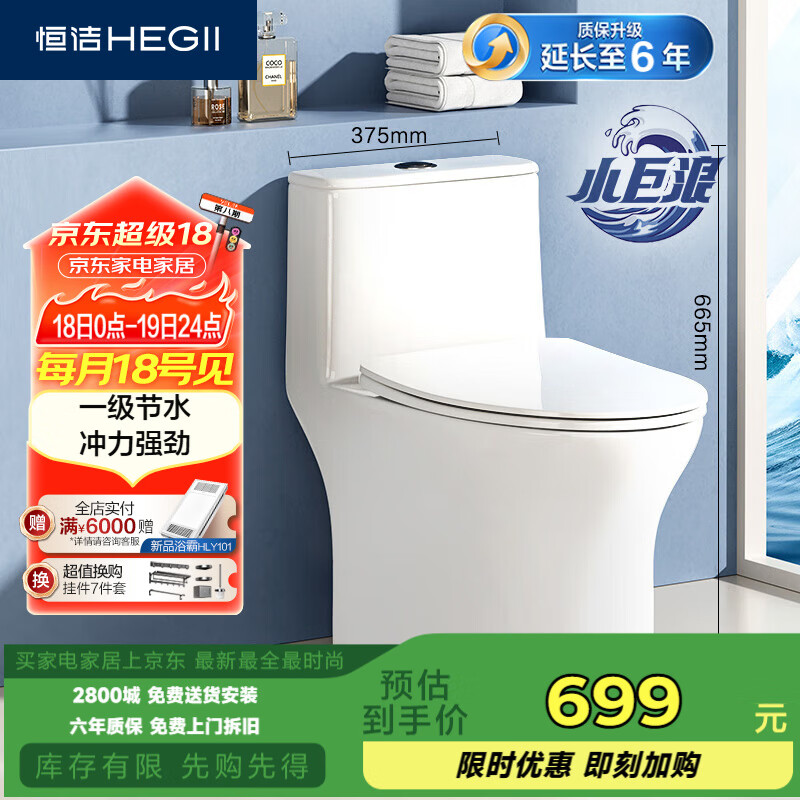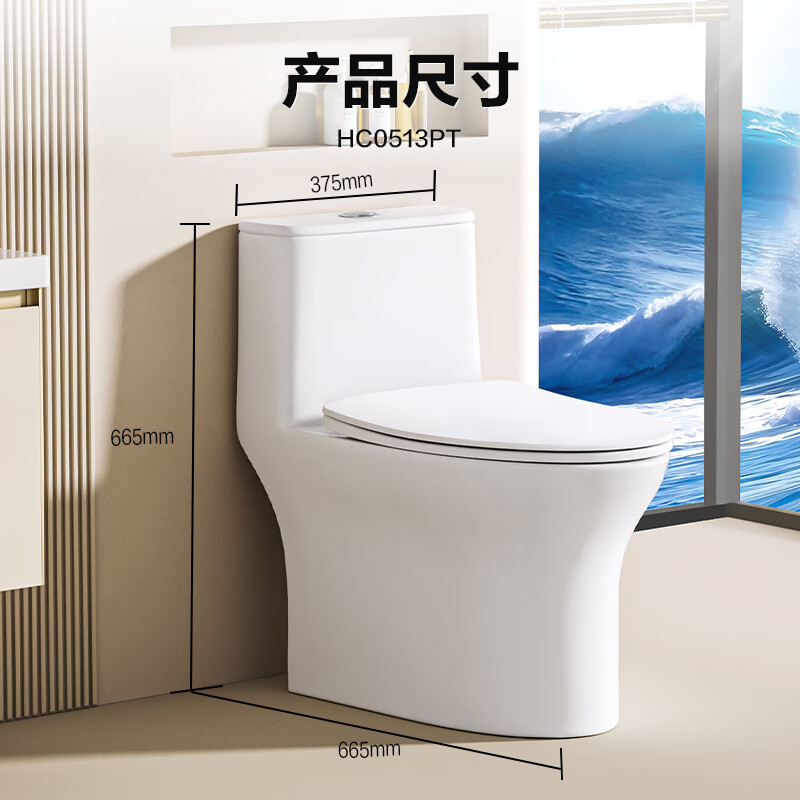 恒洁(HEGII)马桶513 家用虹吸小巨浪马桶小户型卫生间坐便器HC0513PT-350价格:699.00元!