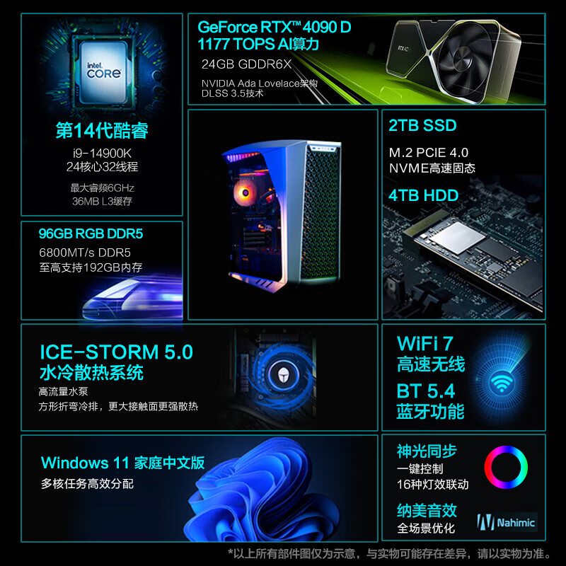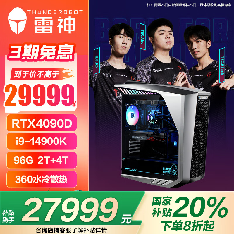 雷神(ThundeRobot)黑武士·Shark 畅玩黑悟空游戏台式电脑电竞主机(i9-14900K 96GD5 RTX4090D 2T+4T 360水冷 Z790)价格:29999.00元!