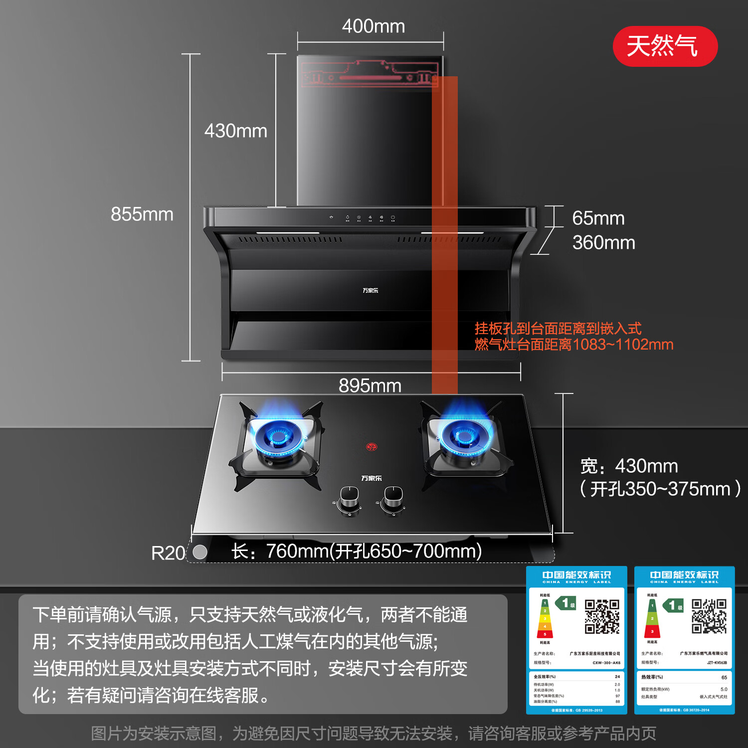 万家乐烟灶热三件套 26立方顶侧双吸油烟机50L扁桶WIFI智控电热水器套装AK6+KV063B+50FB2天然气价格:3099.00元!