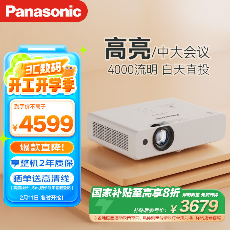 松下(Panasonic)PT-WX3901投影仪办公室会议专用 培训商用户外 家用家庭影院(4000流明 高亮白天直投)价格:4599.00元!