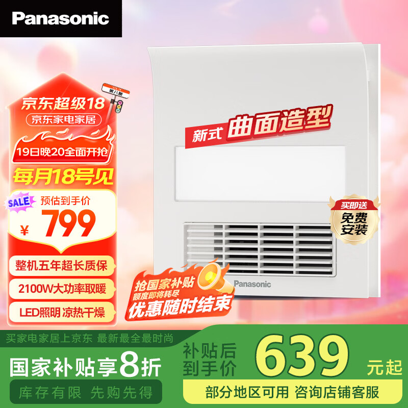 松下(Panasonic)浴霸FV-RB20ZL1风暖浴霸吊顶换气浴室暖风卫生间 小白弧照明浴霸 价格:1299.00元!
