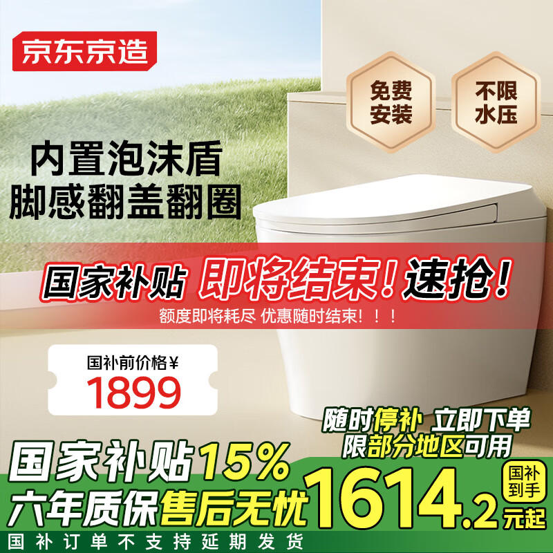 京东京造小白鲸Plus轻智能马桶一体机 内置泡沫盾带水箱坐便器5倍冲力价格:2099.00元!