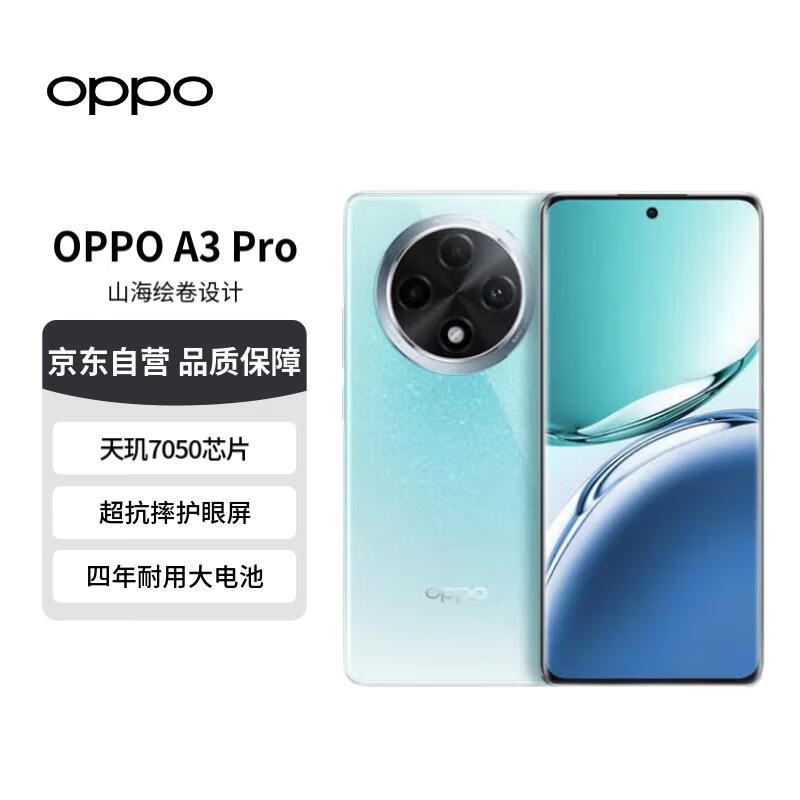OPPO A3Pro新品5G满级防水 四年耐用大电池12GB+256GB天青 护眼屏AI OPPO手机 【赠话费券】价格:1999.00元!