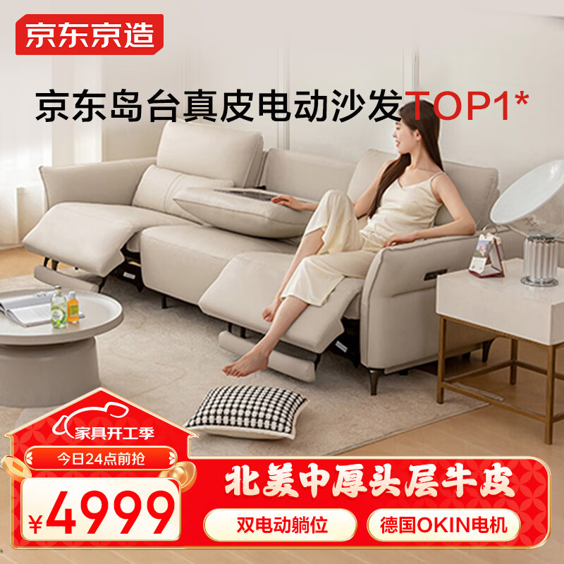 京东京造家居家居北岛真皮沙发 靠背秒变茶几头层牛皮双电动2.7m价格:4899.00元!