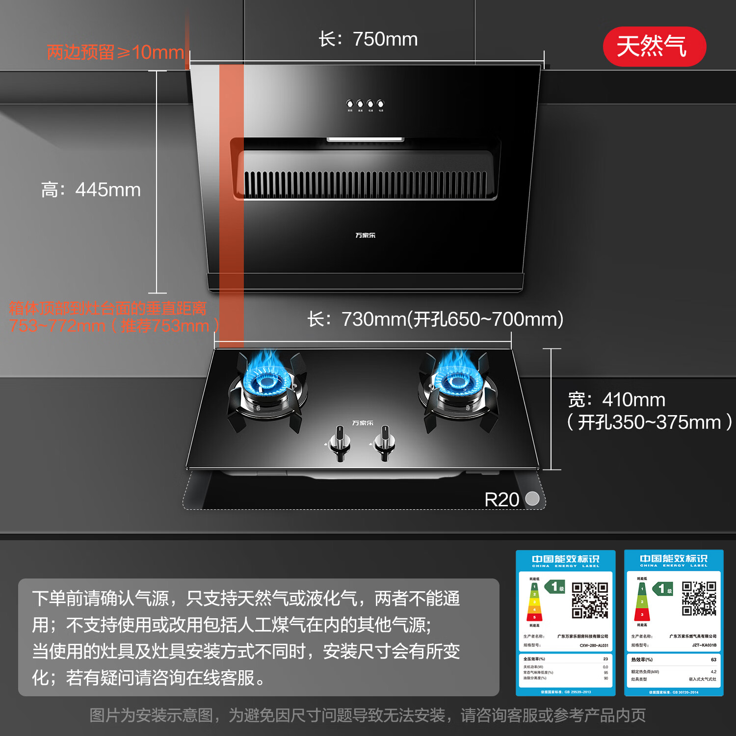 万家乐 抽油烟机 烟灶套装 18立方爆炒风 小户型侧吸式油烟机燃气灶具套装AL031+KA031B天然气价格:1139.00元!