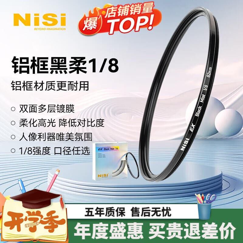 耐司(NiSi)1/8黑柔滤镜 49mmEX铝框柔光镜八分之一柔化镜柔焦镜朦胧镜人像拍摄美颜微单相机单反适用索尼佳能价格:140.00元!