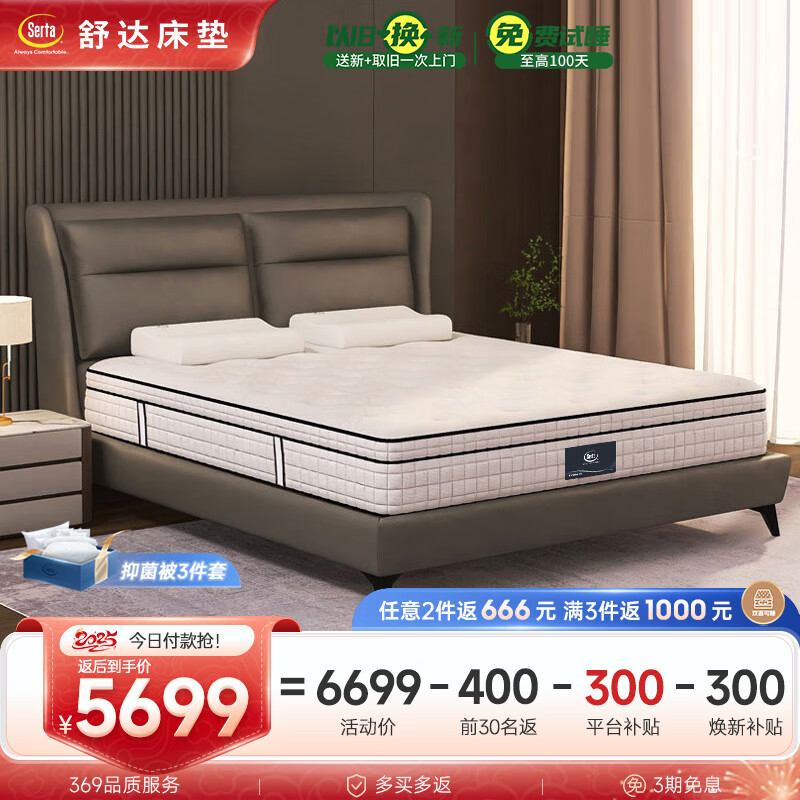 舒达(serta)MIRA COIL连续弹簧支撑系统乳胶床垫软硬双面25CM致眠1.5米×2米价格:6699.00元!