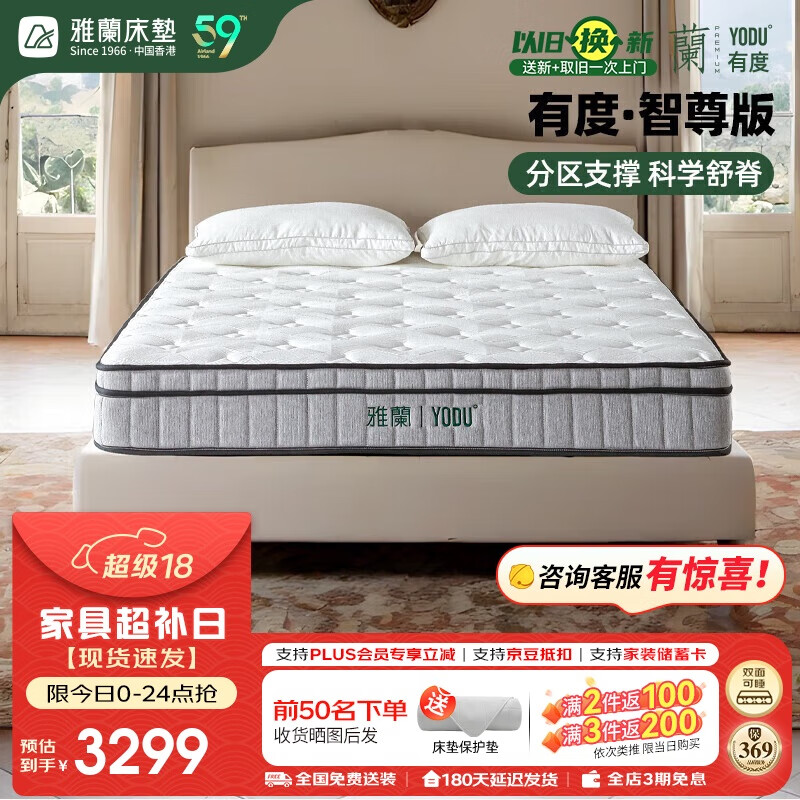 下面笔者为大家介绍雅兰有度智尊版挺好的, 做工精细 ,价格便宜质量好,方便快捷很满意,必须要好评!家里以前也是买的雅兰床垫,新房装修也决定继续支持国产品牌,新垫子收到了也没有味道