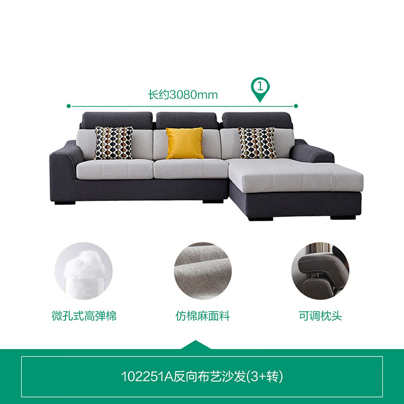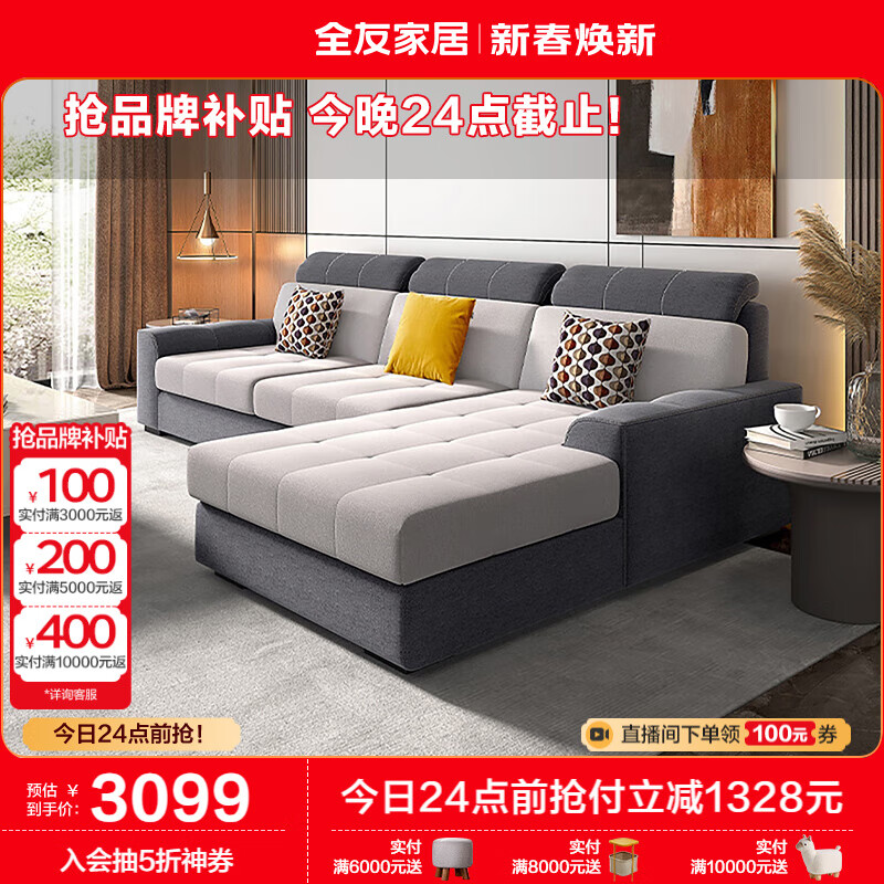 全友家居 现代简约布艺沙发客厅家具小户型家用贵妃位转角沙发102251价格:4427.14元!