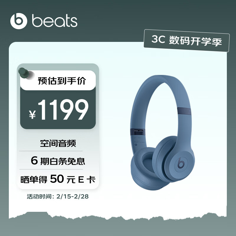 beats Solo 4 无线头戴式蓝牙耳机 空间音频 无损音频 兼容苹果安卓系统 岩青色价格:1199.00元!